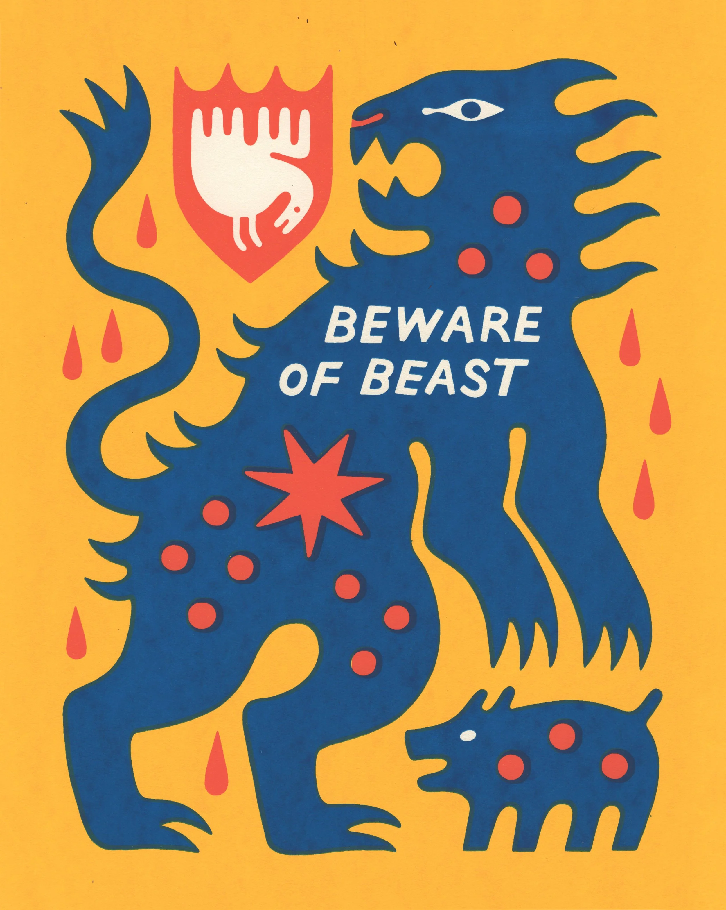 Referencing “Beware of Beast”. Please note how the yellow layer interacts with the orange layer on the goose crest. And then how the blue layer interacts with the yellow and orange.